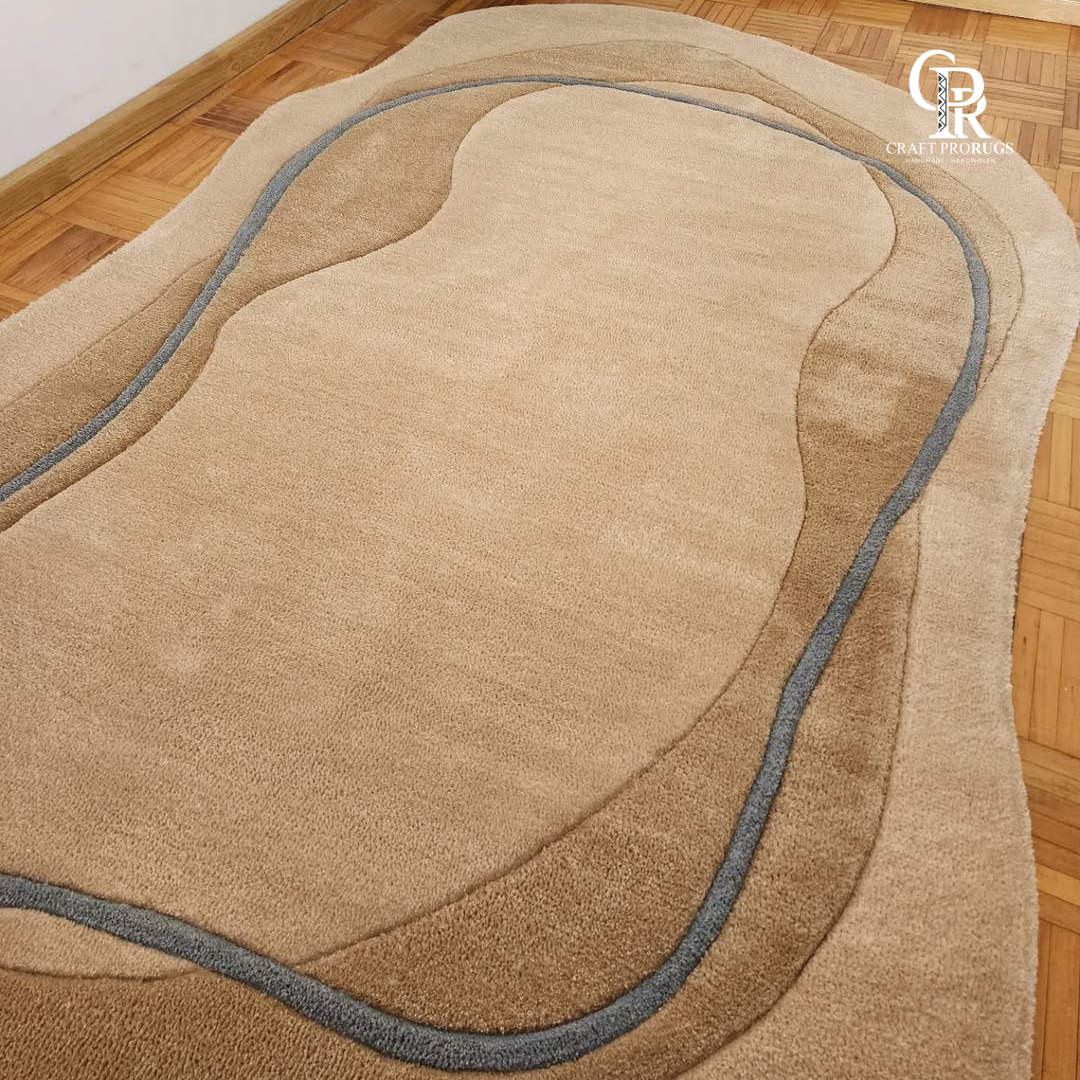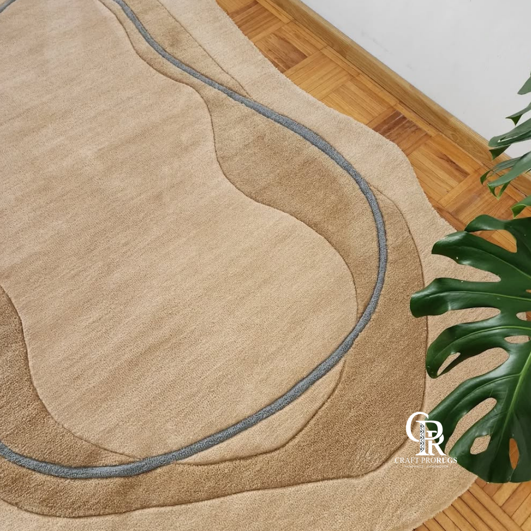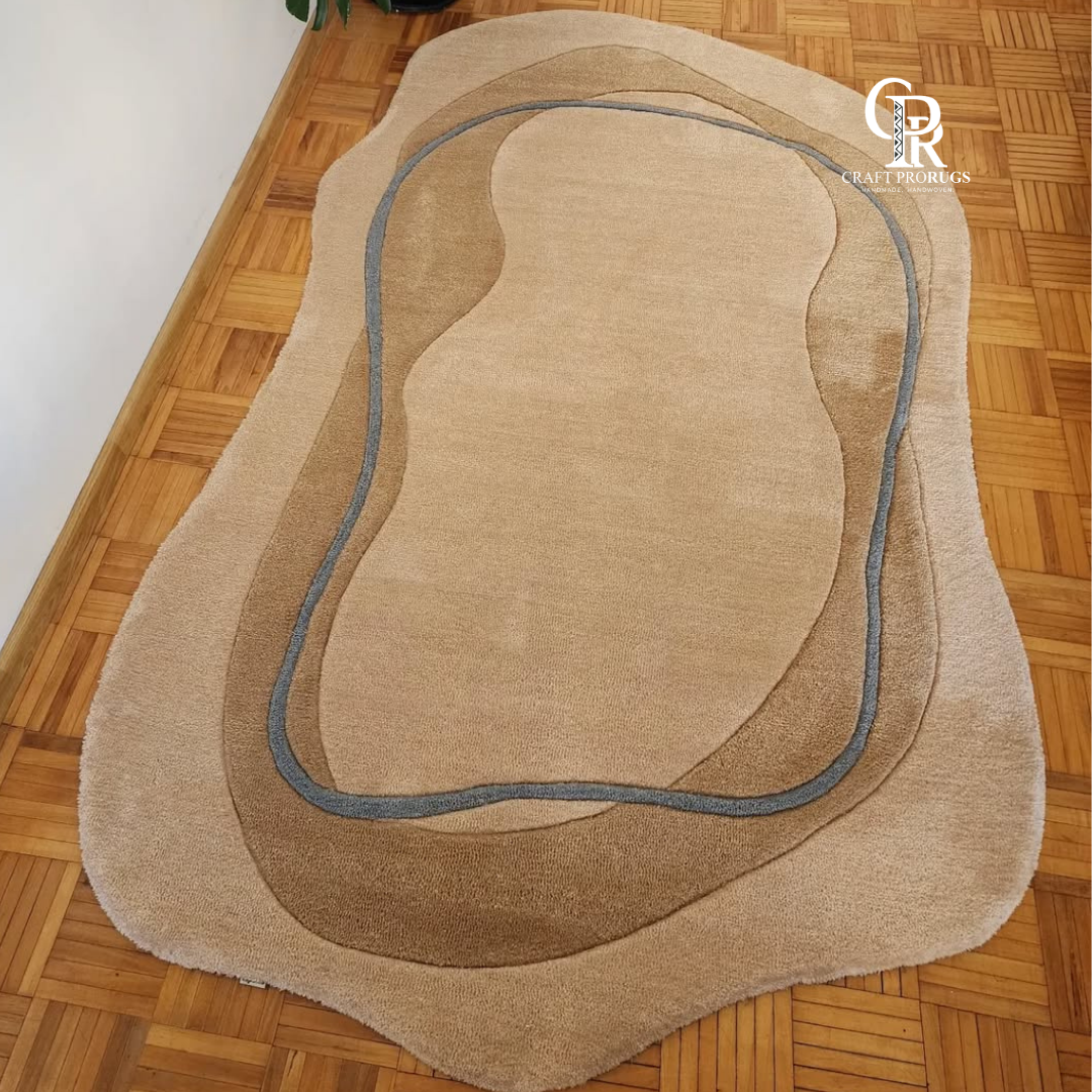 Hand-tufted using ultra-soft premium yarn, it offers plush underfoot comfort while maintaining durability and refined texture. The freeform shape and flowing layered design evoke natural landscapes, making this rug ideal for modern, organic, and earth-inspired décor styles.